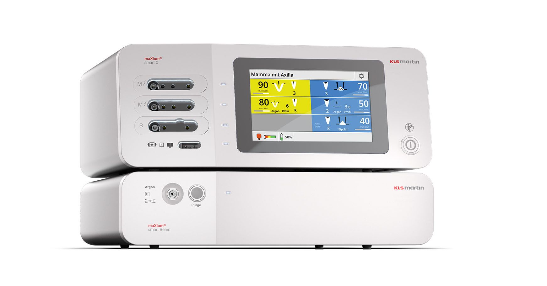 При использовании совместно с аргоновым блоком и тележкой, ME 402 maxium® составляет идеальную систему для аргоноплазменной хирургии. В такой комплексной системе аргоновый блок maxium® Beamer полностью управляется через панель управления электрокоагулятора.