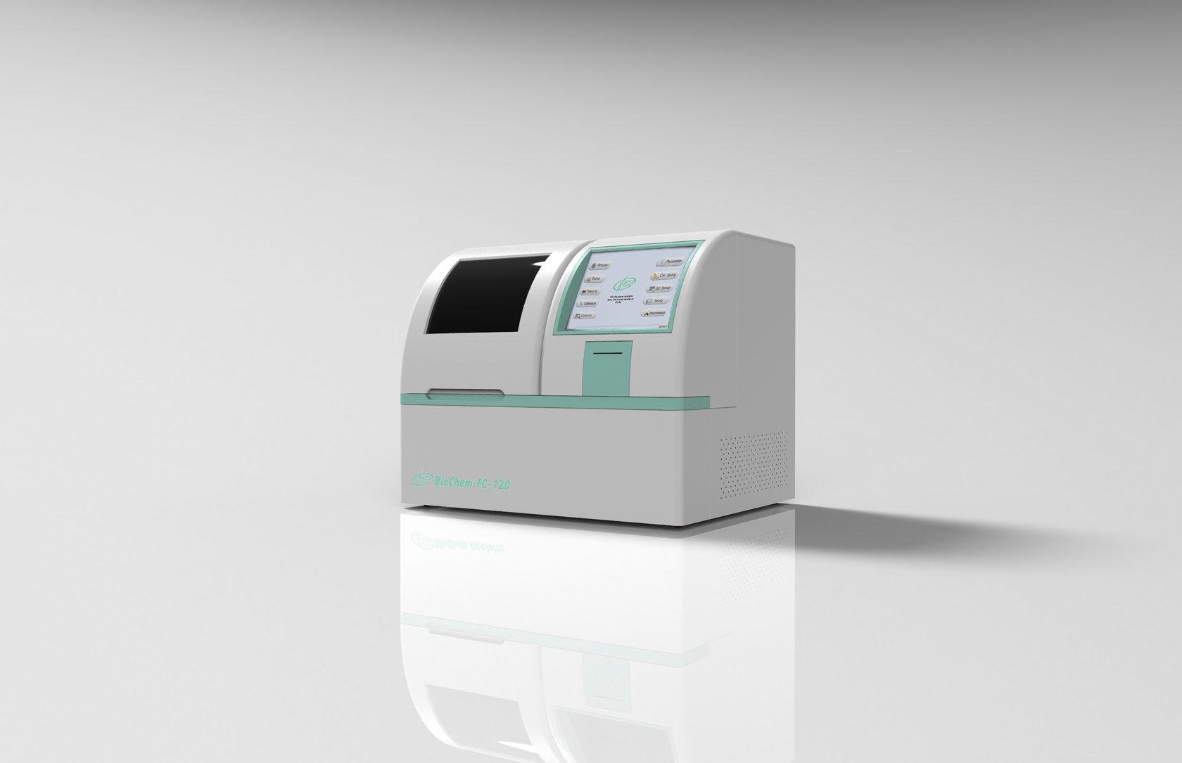 BioChem FC-120 компактный настольный автоматический анализатор производительностью 100 фотометрических тестов в час со встроенным компьютером и свободно формируемым ротором проб и реагентов.